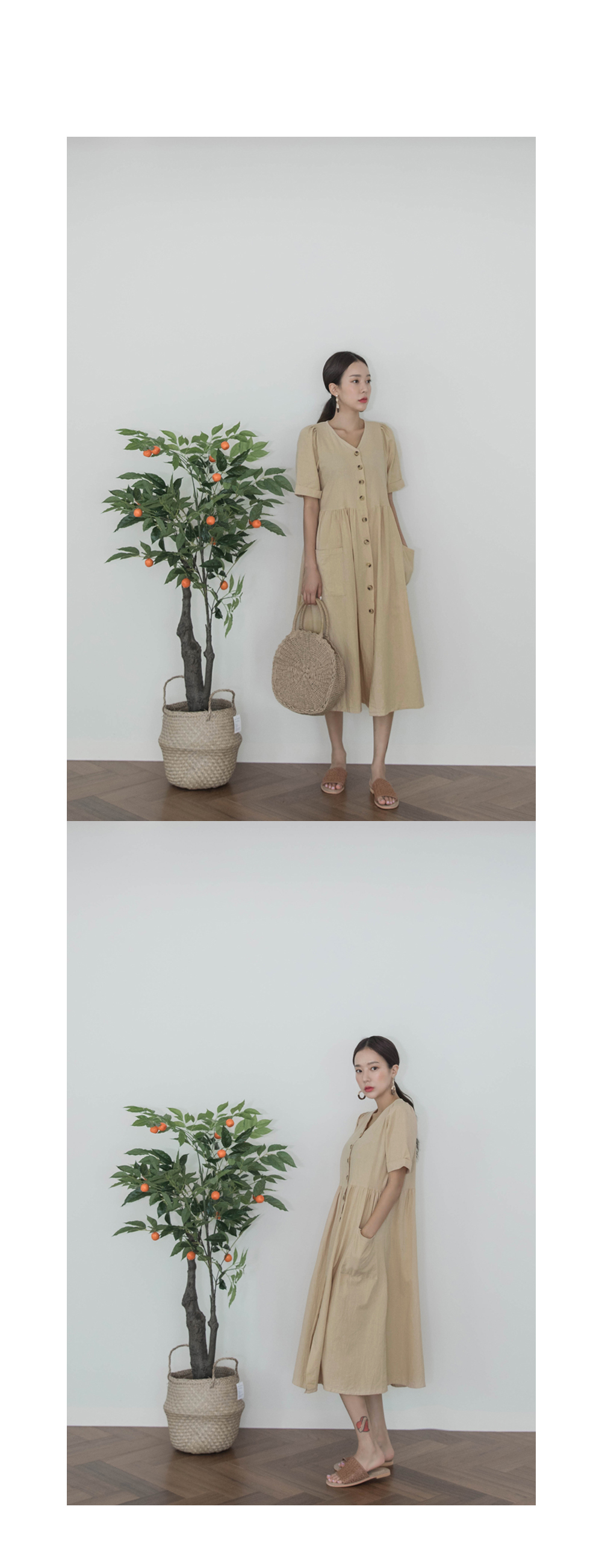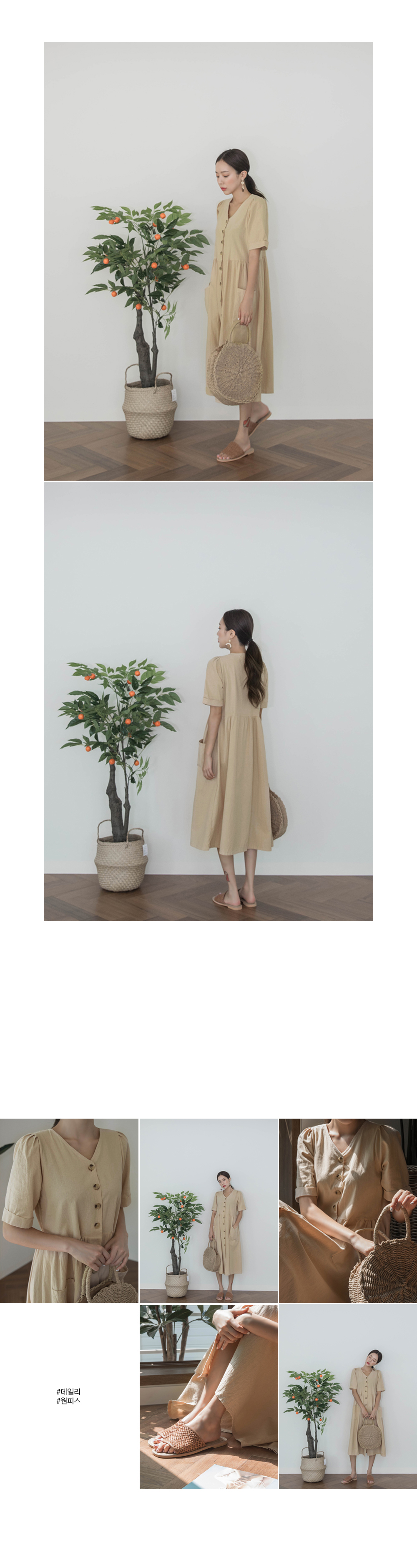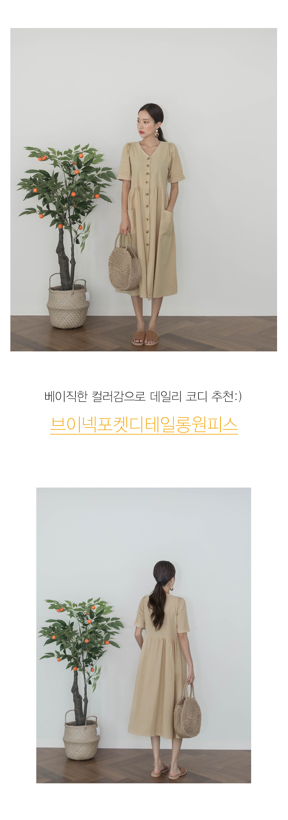 브이넥 포켓디테일 롱 원피스에요:)