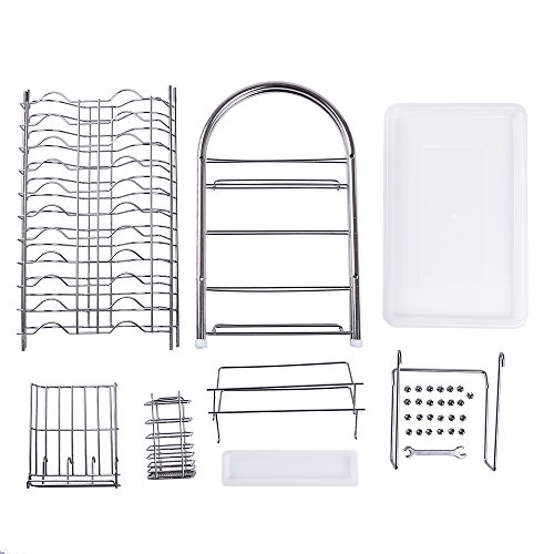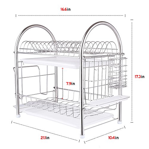 -. Title : 2-Tiers Rustproof Stainless Steel Metal Wire Medium Dish Drainer Drying Rack,Kitchen Plate Chopstick Cup Utensil Organizer Holder With Drip Tray (Stainless Steel, Chrome)