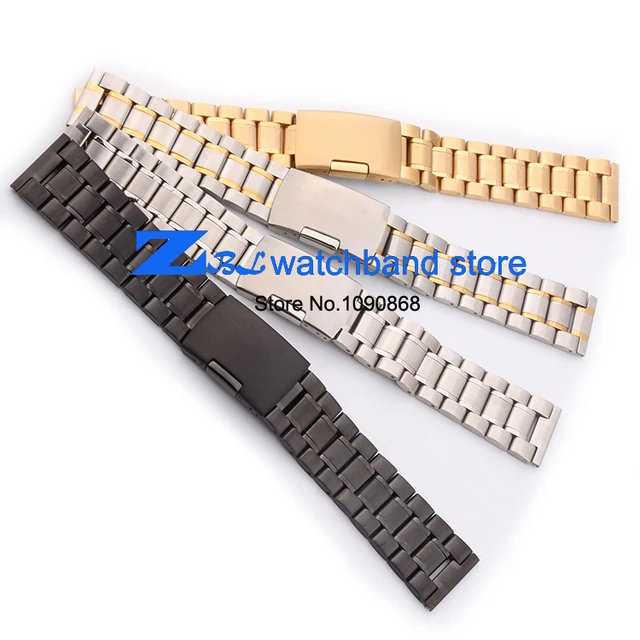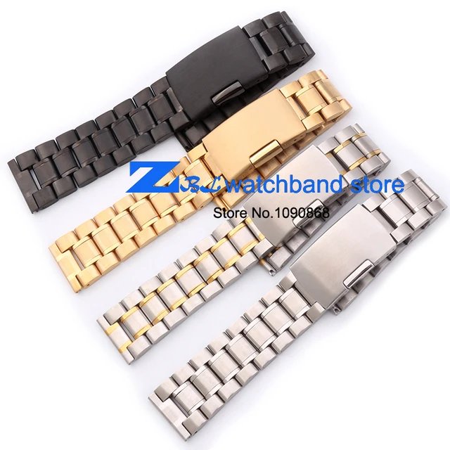 | [해외] 일반 평면 인터페이스 스테인레스 스틸 손목 금속 손목 밴드 골드 실버 블랙 시계 벨트 폭 18 미리메터 20 미리메터 22 미리메터 24 미리메터 |