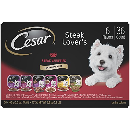 -. Title : CESAR Steak Lover's Adult Wet Dog Food Variety Pack Trays 3.5 Ounces (Pack of 36)