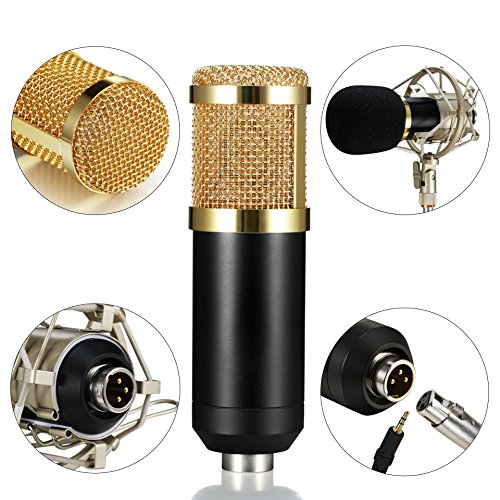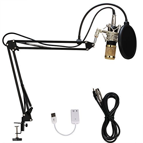 -. Feature : ALL-IN-ONE STARTER KIT: The complete BM-800 Condenser Microphone Kit for studios, Recording studio, Network anchor, Broadcasting, Computers gamers and Live recording. / BETTER QUALITY: The BM-800 Condenser Microphone is capable to capture premium vocal quality, picks up clear voice and rich detailed sound waves such as acoustics and instruments. And featuring the cardioid [uni-directional] polar pick-up pattern is able to minimize background noise. / STURDY AND DURABLE: Adjustable Suspension Scissor Arm Stand is made of metal. It can be folded for carry, can be mounted on the table easily. Your microphone is held safely on this scissor arm microphone clip. / MANY ACCESSORIES INLCUDED: The Microphone SHOCK MOUNT features an angle adjustment with locking knob and can effectively reduce handling noise. The anti-wind FOAM CAP protects microphone against wind interference and singers' spit. The WIND SCREEN POP FILTER MASK SHIELD removes plosive Pops effectively and make sure your message loud and clear, and banish the dreaded hissing and lisping sounds during recording. / USB AUDIO ADAPTER(External Sound Card) - Connect the microphone and Headphone. Ideal for desktop and laptop with better sound capturing. Be sure using this USB adapter if recording sound volume is very low.