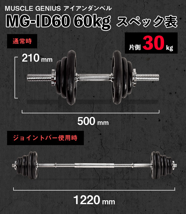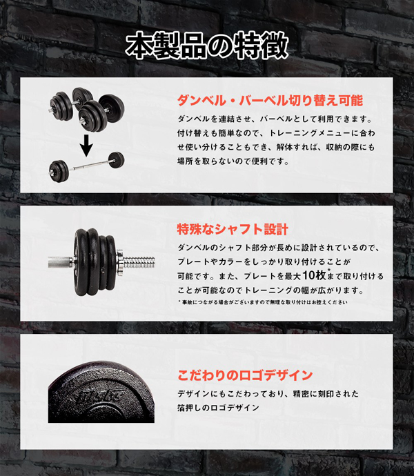 ●ダンベル・バーベルの二種類を一つにしたMUSCLE GENIUS ダンベルシリーズ。