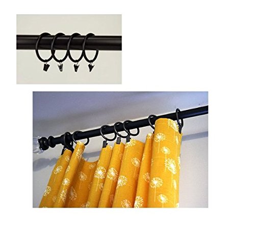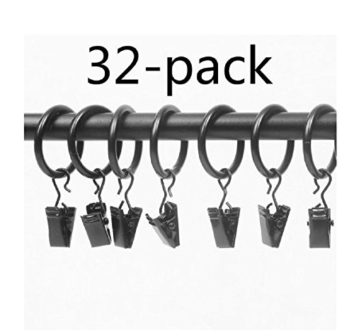 YOUBEDO 32PCS BLACK MATTE METAL CURTAIN RINGS WITH CLIPS