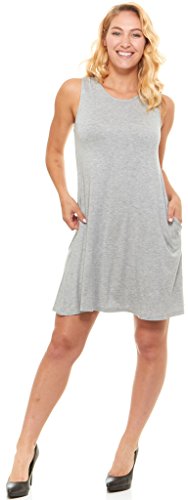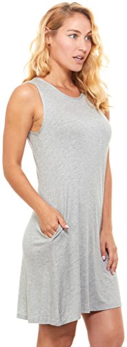Womens Casual Plain Simple Sleeveless Pocket Swing T-shirt Loose Dresses, By Floopi