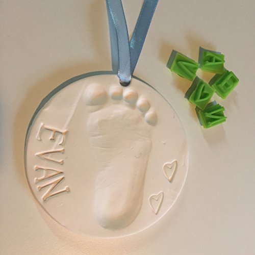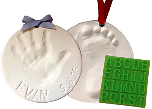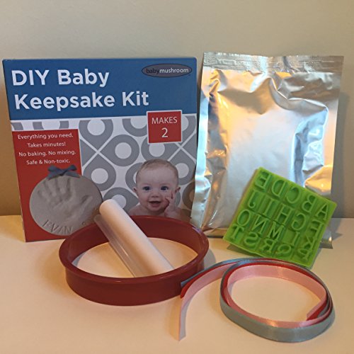 -. Binding : Baby Product -. Brand : Baby Mushroom -. EAN : 0784672932998 -. Feature : EVERYTHING YOU NEED - to make beautiful, lasting handprint, footprint or paw print keepsake ornaments including white clay, roller, cutting ring, straw punch, 3 ribbons (red, blue, and pink), bonus customization stencil kit, and simple instructions. / BONUS PERSONALIZATION KIT - with letters, numbers and shapes so you can customize and personalize your keepsake with child's name, birthday, or current date. / MAKES 2 - enough clay for two 4.5" ornaments! Perfect for multiple children or pets, twins, hand and foot pair, or to keep one and give one as a gift. Makes a great baby shower, early birthday, Valentine's Day, Mother's Day, or Christmas gift. Perfect for new parents, grandparents, and aunts and uncles! / SAFE & EASY - No mixing. No baking. Non-toxic air drying clay for simple DIY fun! Dries into a slightly flexible material that's super durable and won't crack like hard clay! / LIFETIME GUARANTEE - comes with a lifetime no-hassle replacement guarantee. Buy with confidence! -. IsAdultProduct : 0 -. Label : Baby Mushroom LLC -. Manufacturer : Baby Mushroom LLC -. PackageQuantity : 1 -. ProductGroup : Baby Product -. ProductTypeName : BABY_PRODUCT -. Publisher : Baby Mushroom LLC -. Studio : Baby Mushroom LLC -. Title : Baby Handprint Keepsake Ornament Kit (Makes 2) - Bonus Customization Tool for Personalized Baby Gifts. Non-toxic Clay. No Baking. Dries Lightweight and Uncrackable. 100% Guaranteed. -. UPC : 784672932998