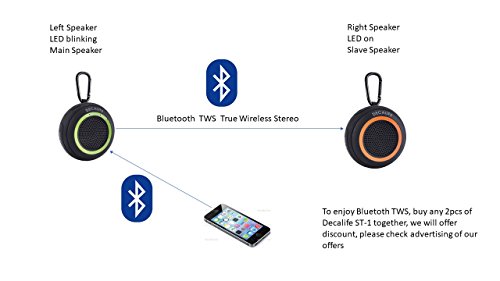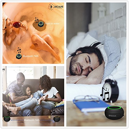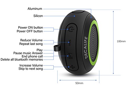 -. Binding : Electronics -. Brand : Decalife -. Color : green -. EAN : 0785883273450 -. Feature : ✓ LIGHTWEIGHT WIRELESS BLUETOOTH SPEAKER - Top quality aluminum and silicone Bluetooth speaker with multiple buttons for easy control such as; play, pause, next song, up & down volume, skip etc. It's just 100 x 100 x 50 mm and weighs just 200 grams. Try it now RISK-FREE with our Money Back Guarantee. / ✓ HIGH-QUALITY SOUND AND MEGA BASS - Are you tired of speakers that makes your favorite music bad because of the low-quality speakers? This Bluetooth speaker has a POWERFUL crystal clear sound system with EXTRA GOOD BASE SOUND. Perfect for beach, travel, camping, festival, gym or any other activity you may like with amazing PLAYING TIME UP TO 10 HOURS. / ✓ IPX7 WATERPROOF & FLOATING - Our Bluetooth speaker is 100% water resistant, if so you can take it in your hand and jump into the pool, it will still be in the same shape like brand new. It also has an AMAZING FLOATING feature, so don't worry if you drop it into deep water. / ✓ QUICK BLUETOOTH 4.2 CONNECT & PERFECT GIFT - This speaker is easy to pair and connects quickly with almost any Bluetooth compatible device such as; android smartphone, iPhone, iPad, computer, PC, MacBook etc. This amazing speaker would be a GREAT GIFT for anyone close to you on birthdays, Christmas, graduation, housewarming and much more. / ✓ OUR PROMISE - Including in your purchase is a hassle-free 30 Days Money Back Guarantee. If you FOR ANY REASON don't like your brand new Bluetooth speaker, simply return it for a FULL REFUND. No questions asked. Grab it TODAY and try it RISK-FREE. -. Label : Decalife -. Manufacturer : Decalife -. MPN : ST-1 -. OperatingSystem : iOS -. PackageQuantity : 1 -. PartNumber : ST-1 -. ProductGroup : Speakers -. ProductTypeName : PORTABLE_AUDIO -. Publisher : Decalife -. Studio : Decalife -. Title : Portable Bluetooth Speaker - Waterproof Floating Speaker with Micro SD Card and TF card slot for MP3 - Versatile Mega Bass Sound Device for Home, Pool, Beach, Travel and More - Green color -. UPC : 785883273450