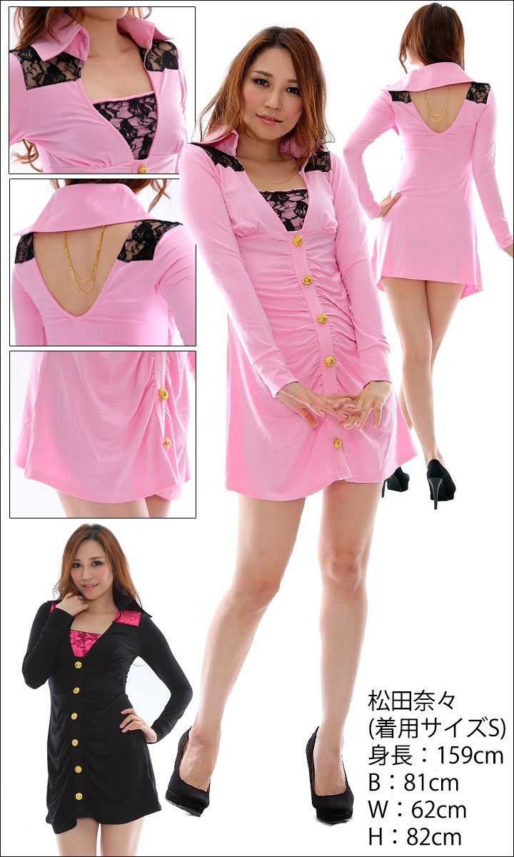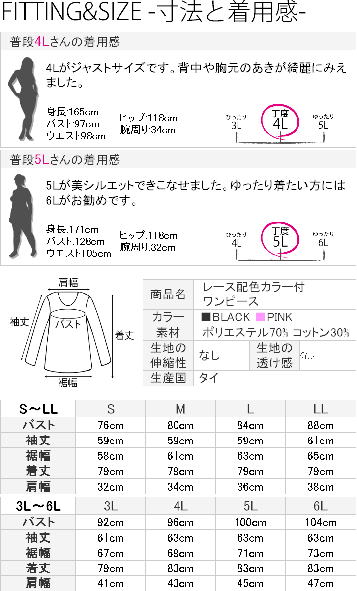 レース配色カラー付ワンピース(LK) 大きいサイズ 春 セクシー レディース ギャル服 ギャル 大人 13号 15号 17号 19号 LL 2L 3L 4L 5L 6L 6L