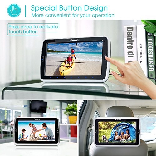 Most convenient headrest mount brackets and buttons: the brackets make it easy to install and remove from car, and the touch buttons and press buttons make it simple for kids to operate