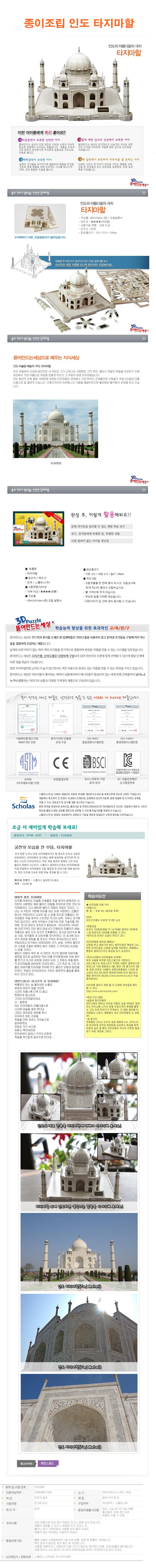 - 품명 및 모델명종이조립 인도 타지마할