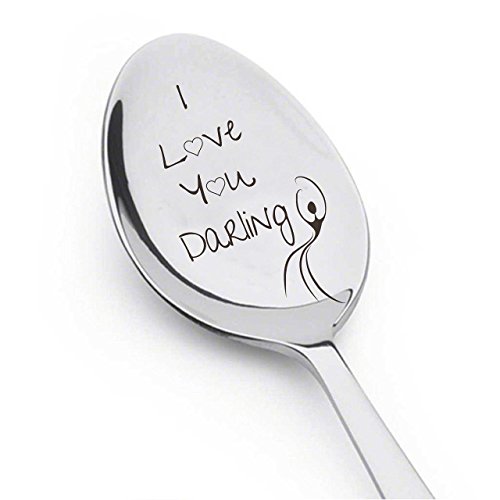 - I love you darling with dancing girl, cute gift, engraved spoon, silverware spoon