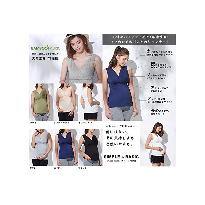 원본상품명: Sweet Mommy カップ付き 授乳タンクトップ 竹?維 マタニティ インナ?