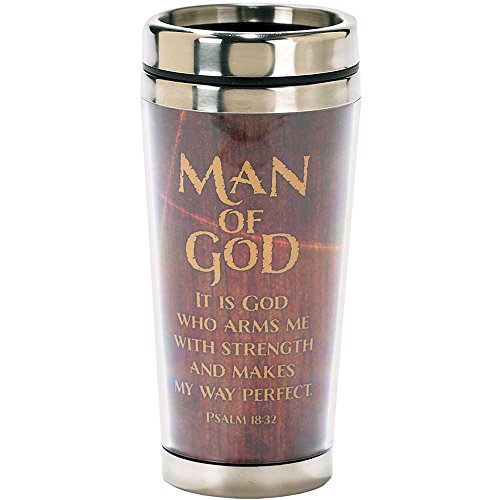 Man of God Woodgrain Psalm 18:32 Insulated 16 Oz. Stainless Steel Travel Mug with Lid
