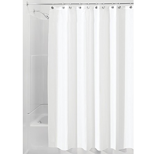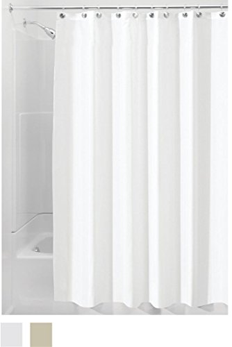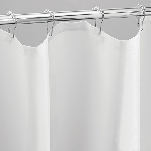 InterDesign Fabric Shower Curtain with 12 Shower Rings Hooks, Mildew Free, Water Repellent - X-Long, 72" x 96", White