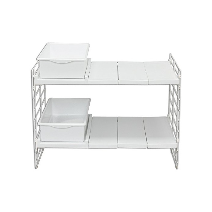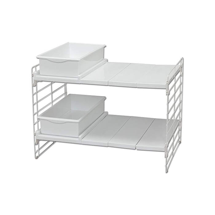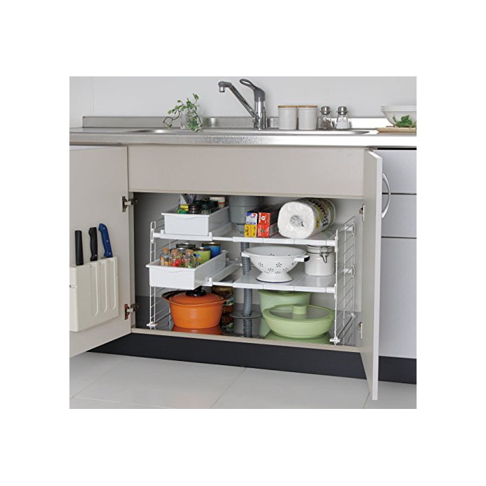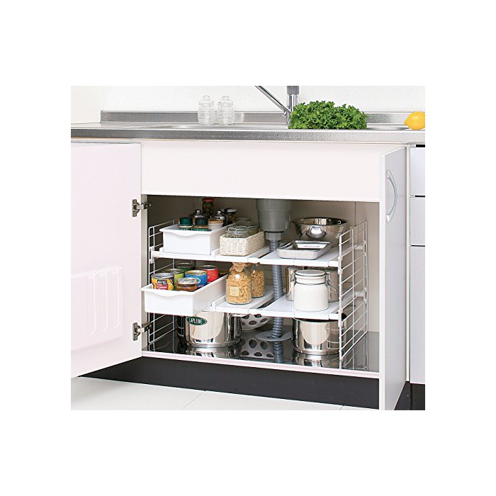 원본상품명: アイリスオ?ヤマ シンク下 マルチ伸縮棚 2段 幅45~70×?行39.5×高さ39.5~43.5cm ホワイト UMD-2V