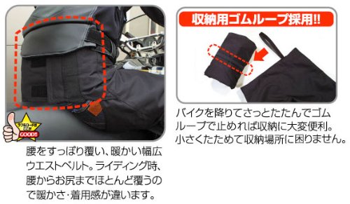 ●컬러:블랙●소재:표땅:600D베리어 크로스PU가공/안감:나일론 터프 타키《루토》●상품 사양 1:knee 패드 표준 장비/팬츠전거의 re 올라 방지 탭●상품 사양 2:【벨크로 전갱이《스토타이푸》】구두를 벗지 않고 재빠른 장착!벨크로 전갱이《스토》에 피트감 발군의 스마트 실루엣!(1.우선,와이드 웨스트 벨트를 고정.2.허벅지에 둘러 감는 바와 같이(하도록) 팬츠를 장착.3.마지막에《스네》부분을 둘러 감아 고정.각부를 조정하여 완료!【웨스트 벨트】허리를 푹(쏙) 덮고, 따뜻한 와이드 웨스트 벨트.라이딩 시,허리부터 엉덩이까지 거의 덮는 때문에,따뜻함 착용감이 다릅니다.【수납용 고무 룹 채용!】오토바이를 내려 갑자기 접어 고무 룹에 중지시키면 수납에 몹시 편리.작게 접고 수납 장소로 곤란하지 않습니다.●특징:knee 패드 표준 장비(액시던트에 준비,압축 우레탄 패드를 인서트 되어 있으므로 안심감이 다릅니다.)●비고:재빠른 착용!감겨라 벨크로 전갱이《스토타이푸》.방풍 방한 over팬츠.