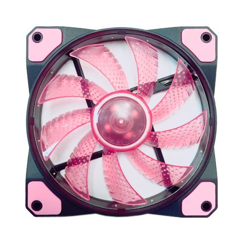-. Feature : Apevia 120mm 4pin+3pin Ultra Silent Pink LED Case Fan w/ Black Frame & 9 x Transparent Pink Blades / With 15 x Pink LED Lights. Connect to Power Supply or Motherboard / 120mm x 120mm x 25mm. Fan Speed: 1500 ± 10% RPM. Air Flow: 57.67 CFM. Air Power: 12 VDC. / Anti-Vibration Rubber Pad. Low Noise Level: 24.7 dBA. Life Expectation: 25,000 Hour / 7 Color Options: Blue, Green, Red, Orange, Yellow, Pink, Multicolor