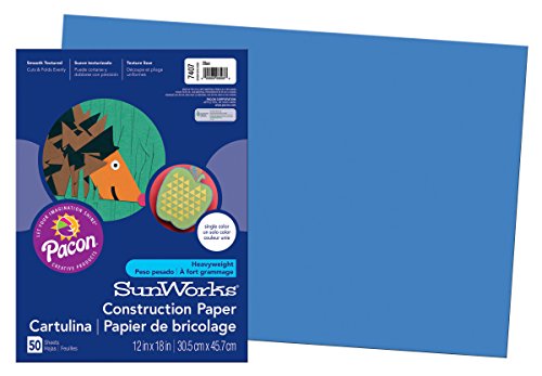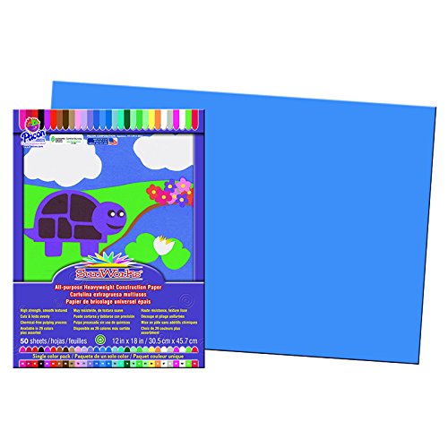 Pacon Sun Works Construction Paper is perfect for arts and crafts, school projects and more. This heavyweight ground wood construction paper provides the best value in school grade construction paper. The bright, consistent colors ensure that you’ll always find the perfect colored paper for any project. This smooth-textured paper cuts and folds evenly without cracking. This pack comes with 50 sheets of 12-inch by 18-inch Blue paper. Each sheet of construction paper is recyclable. Pacon Sun Works Construction Paper allows you to let your imagination shine!Feature