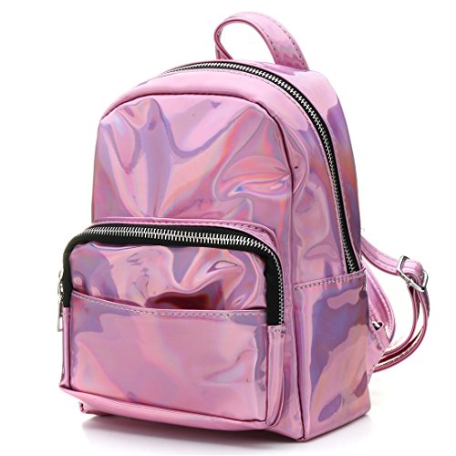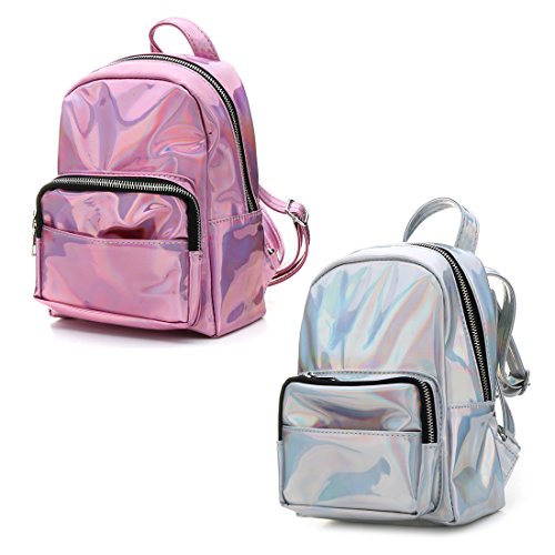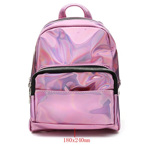 Girl's Sliver Holographic Laser Leather Backpack Travel Casual Satchel