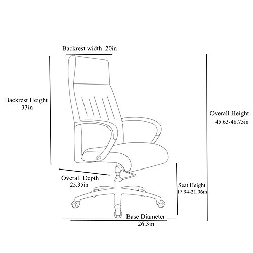 -. Binding : Office Product -. Brand : Zuri Furniture -. Feature : W 26.13" x D 25.35" x H 45.63"-48.75"; Adjustable Height: 17.94"-21.06" / Genuine Leather with High Density Foam Padding and Leatherette Match on back / Padded Armrest, Aluminum Base, and PU Castors / Ergonomic Tilt Mechanism and Chrome Gas Lift. -. Label : Zuri Furniture -. Manufacturer : Zuri Furniture -. PackageQuantity : 1 -. ProductGroup : Office Product -. ProductTypeName : OFFICE_PRODUCTS -. Publisher : Zuri Furniture -. Studio : Zuri Furniture -. Title : Forbes Genuine Leather Aluminum Base High Back Executive Chair