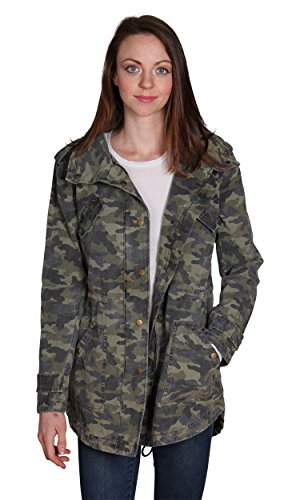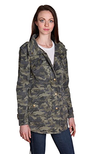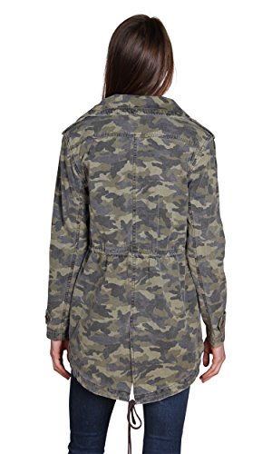 If you loved Velvet's prior Military style jackets, you will love the latest version, the Darla Camo Army Jacket. Utilizing their signature cotton twill fabric, the Darla jacket features new style elements like the camo fabric and the scoop hem. Other great features include the adjustable drawstring waist that you can adjust from the inside for fit flexibility, the epaulets on the shoulders and the snap panel around the cuff for added detail. The snaps continue as closure for the front main pockets and the jacket features both a zipper closure and snap closure in front. With ties at the hem in back for detail. Available in Camo. Fabric is 100% Cotton. Machine wash, tumble dry low. Made in China.Feature