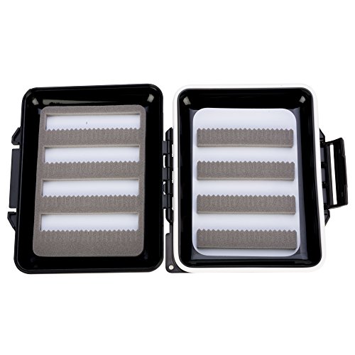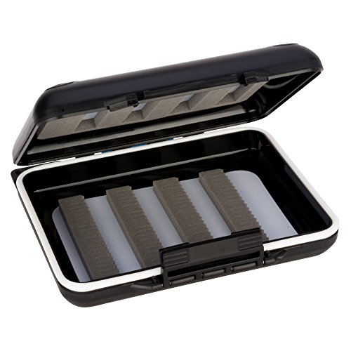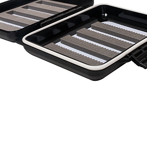 -. Title : Waterproof Fly Fishing Box with Hole for Zinger, Black Case for Dry Flies, Nymphs, Streamers, and Tackle Gear, Slit Foam X005-A