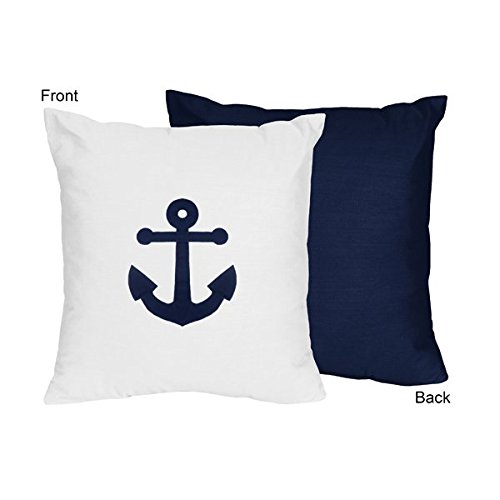 Sweet Jojo Designs Anchors Away Nautical Navy and White Decorative Accent Throw Pillow