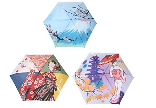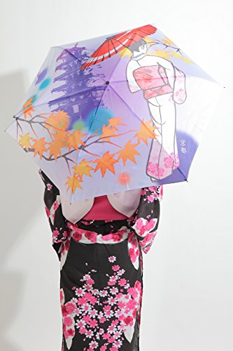 -. Feature : 日本の伝統の彩りが感じられる、様々なデザインの折り畳み傘です。人気の富士山、舞妓、京都、そしてそれぞれが1本ずつの3本セットの4種類をご用意しました。 / 普段着、和装に合わせての様々なシーンに合わせてご使用頂けます。外国の方へのプレゼントなどにも喜ばれることでしょう。 / 晴雨兼用傘。軽量180g設計。UVカットを施しておりますので、日傘としてもご使用頂けます。 / 全長:52.5cm、全幅:90cm、親骨の長さ:50cm / 生地:ポリエステル100% 傘骨材質:スチール 生産国:中国