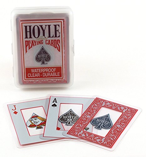 Outdoor lovers will instantly fall in love with this unique deck of cards! Hoyle clear playing cards are ultra-durable, waterproof and make any game more fun by being clear. Perfect for the beach or camping, these cards are well-suited for almost any wet or humid situation.Feature