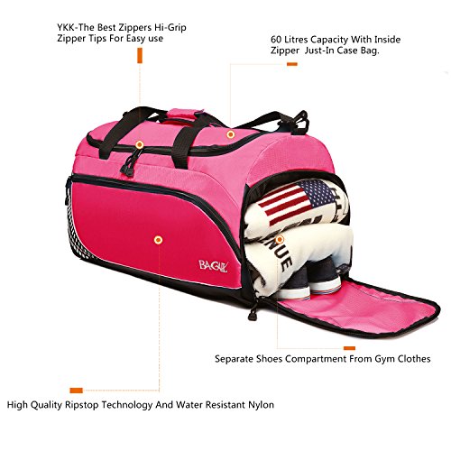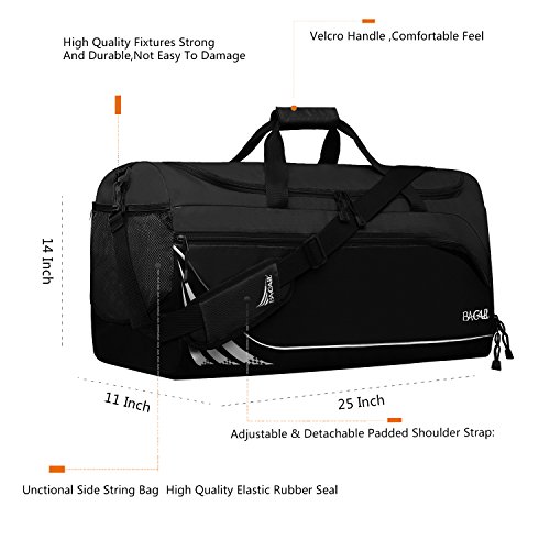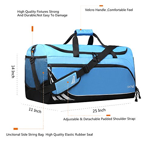 -. Brand : Bagail -. Department : unisex-adult (lage only) -. Feature : Bagail SPORTS and GYM DUFFLE Bag 11inchx14inchx25inch with 60 Litres capacity ,it is ideal to use as a lightweight gym and sports bag to carry all your gear. It can be folded up super small ,which is is a convenient choice for your everyday activities, overnight, sports, gym, weekend and vacation. / DURABLE AND HIGH QUALITY ,Ripstop Technology and Water resistant nylon keeps gear dry. High quality YKK zippers with pull string will not break on you,Adjustable & Detachable Padded Shoulder Strap for comfort and Dual Handles for easy carrying. / GEAR and TRAVEL ESSENTIAL This DUFFLE GYM bag is very easy to carry and packed,saves a lot of space and large capacity to allow your clothes,shoes and other gear accessories. Folds up into its own compact zippered pouch for storage. Unfold at the airport to avoid excess baggage charges. / LARGE CAPACITY &LIGHT WEIGHT,lightweight, foldable and compact; 60 Litre & weighs 60% less than your empty suitcase . Use at home to store and carry your sports gear or other large items without carrying the bulk weight on your shoulder and very comfortable. / BEST MATCH WITH BAGAIL PACKING CUBES.This gym packing Duffle bag is deigned to work with BAGAIL packing cubes-Add both to your cart for an organized lightweight travel experience. -. Model : bag06 -. ProductGroup : Apparel -. ProductTypeName : LAGE -. Size : medium -. Title : Bagail Travel Lage Duffel Bag Lightweight for Sports, Gym, Vacation