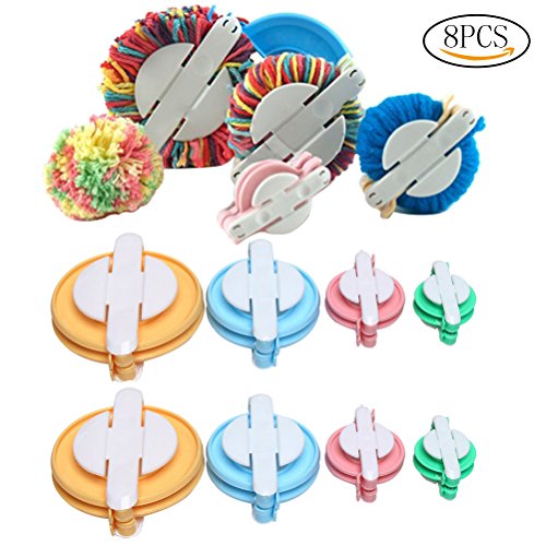 SUMAJU 8Pcs Pom-pom Maker, 4 Size Fluff Ball Weaver Needle DIY Wool Knitting Craft Tool Set