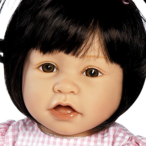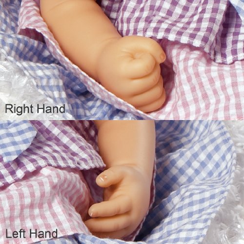 - Feature : Size: Approx. 22" Head to Toe and 13" seated / Head and Limbs are made of Flex-Touch Vinyl, 3/4 Vinyl Arms and 3/4 Vinyl Legs / Weighted Soft Cloth Body for a real baby feel / Beautiful hand set bown eyes, hand painted details and hand applied eyelashes / Vinyl Arms - ¾ Length; Vinyl Legs - Full Length