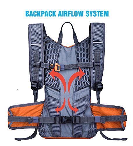 -. Feature : FIT YOUR SIZE: Adjustable shoulder/chest straps. Fit chest sizes from 28" up to 49" chest size. Adjustable shoulder strap and waist strap to makes sure it doesn't bounce when you move. / ENOUGH CAPACITY: Large capacity of more than 7 Liters, Double-layer compartments fit your 13" laptop,clothes,iPad and phone. Two side pockets and one more little pocket for even more space. / COMFORTABLE AND FUNCTIONALLY: Professional backpack for camping, hiking, cycling and running. Airflow system design, keep your back cool and dry. Rather than two small pieces of fabric connecting the main body, the shoulder straps taper into a large piece. This contour create a really comfortable and snug fit.