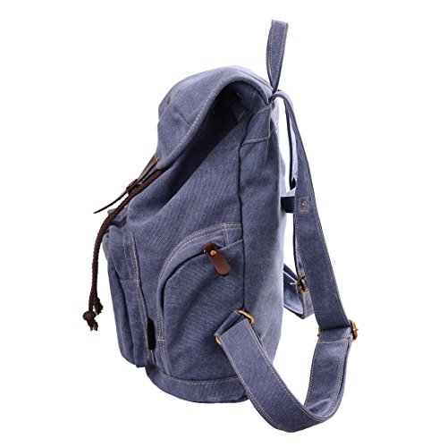 -. Feature : Adjustment system can accurately adjust the focus for different height and shape, comfortable to wear / Sturdy and durable solid classic medium canvas backpack / Interior: key ring, laptop sleeve, large capacity main compartment, small zippered pocket; exterior:2 side zippered packets,1 front zippered pocket / Fold-over flap with snap covers drawstring closure add to the safety / Dimensions: Approx 11"L x 5.9"W x 14.5"H, Suitable for 13 inches computer