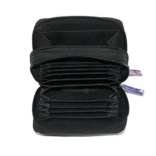 Pearl Sheen, Textured Floral Print Patterned PU with Bright Textured Man Made Trim Front Slip Pocket I.D. Window, Full Zipper Section with 9 Accordion Credit Card Pockets and 2 Utility Pockets Gusset Zipper Section with 2 Utility Pockets