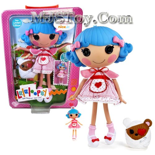 -. Binding : Toy -. Brand : Lalaloopsy -. EAN : 0793625045685 -. Feature : Includes: Rosy Bumps 'N' Bruises with Pet "Boo-Boo Bear" and Bonus Mini 3 Inch Doll / Doll measured approximately 12 inch tall / Limited Edition from the Sew Limited Series / Lalaloopsy is part of the Nick Jr. Series / For ages 4 to 104 -. IsAdultProduct : 0 -. Label : MGA Entertainment -. LegalDisclaimer : ships to continental USA only -. Manufacturer : MGA Entertainment -. Model : 418672 -. MPN : 418672 -. PackageQuantity : 1 -. PartNumber : 418672 -. ProductGroup : Toy -. ProductTypeName : TOYS_AND_GAMES -. Publisher : MGA Entertainment -. Studio : MGA Entertainment -. Title : MGA Lalaloopsy Limited Edition 12 Inch Tall Button Doll - Rosy Bumps 'N' Bruises with Pet "Boo-Boo Bear" and Bonus Mini 3 Inch Doll -. UPC : 793625045685