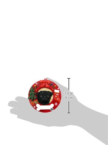 Pug Christmas Ornament Black Wreath Shaped Easily Personalized Holiday Decoration Unique Pug Lover Gifts