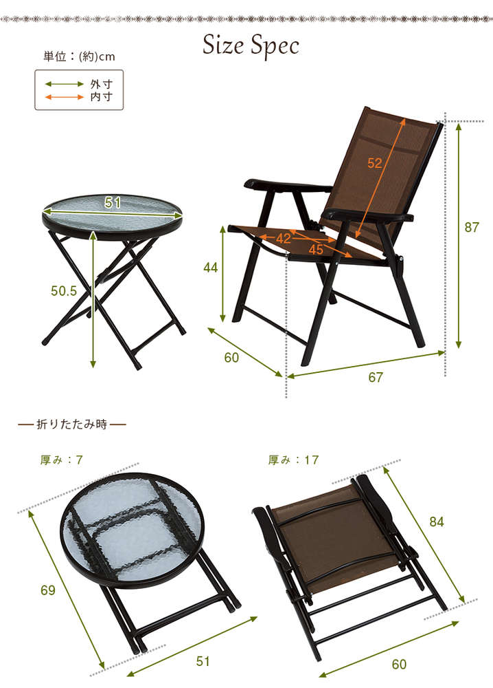 ●チェア:(約)幅60×奥行67×高さ87×座面高44cm