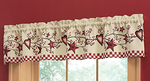Features a vine of berries twists across the valance that is decorated with hearts and stars; Rod pocket top for easy hanging