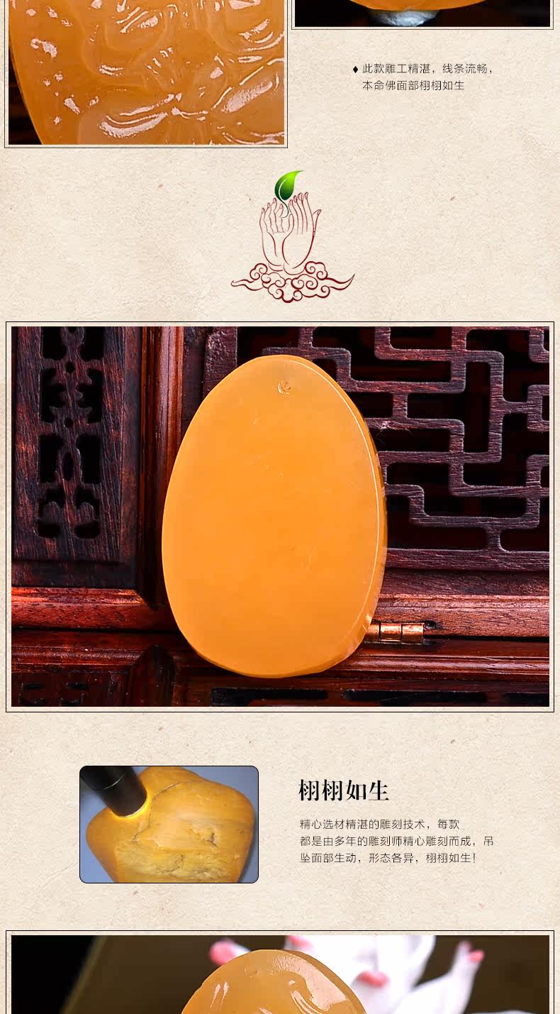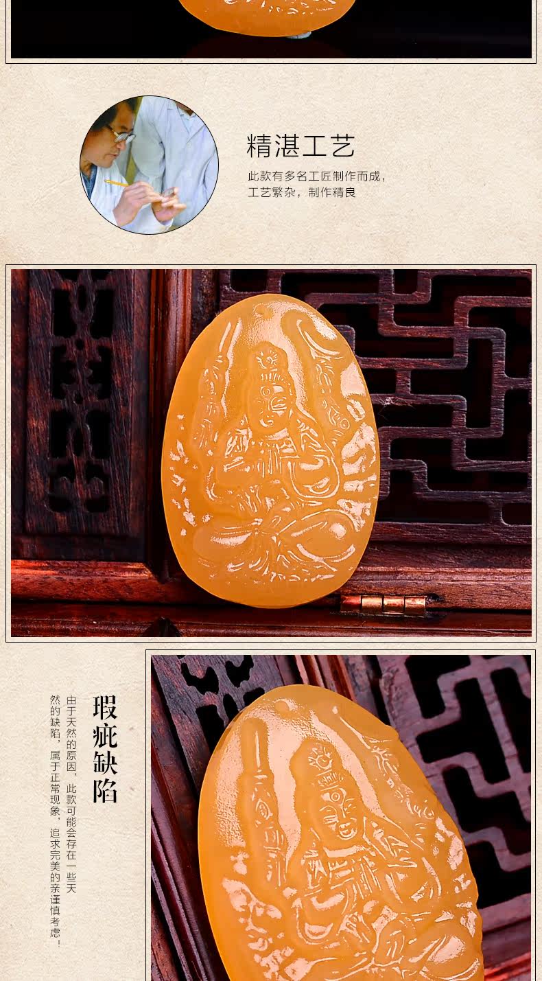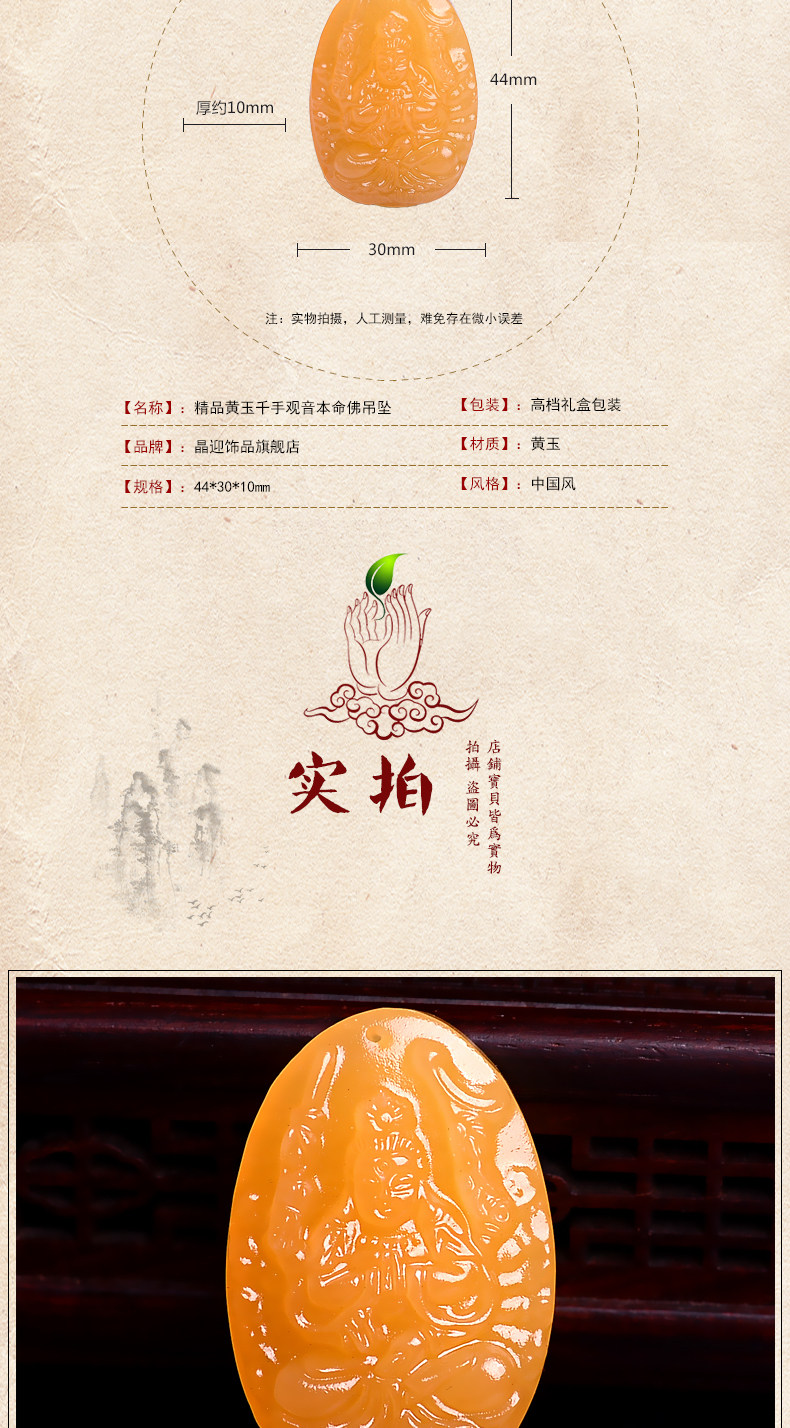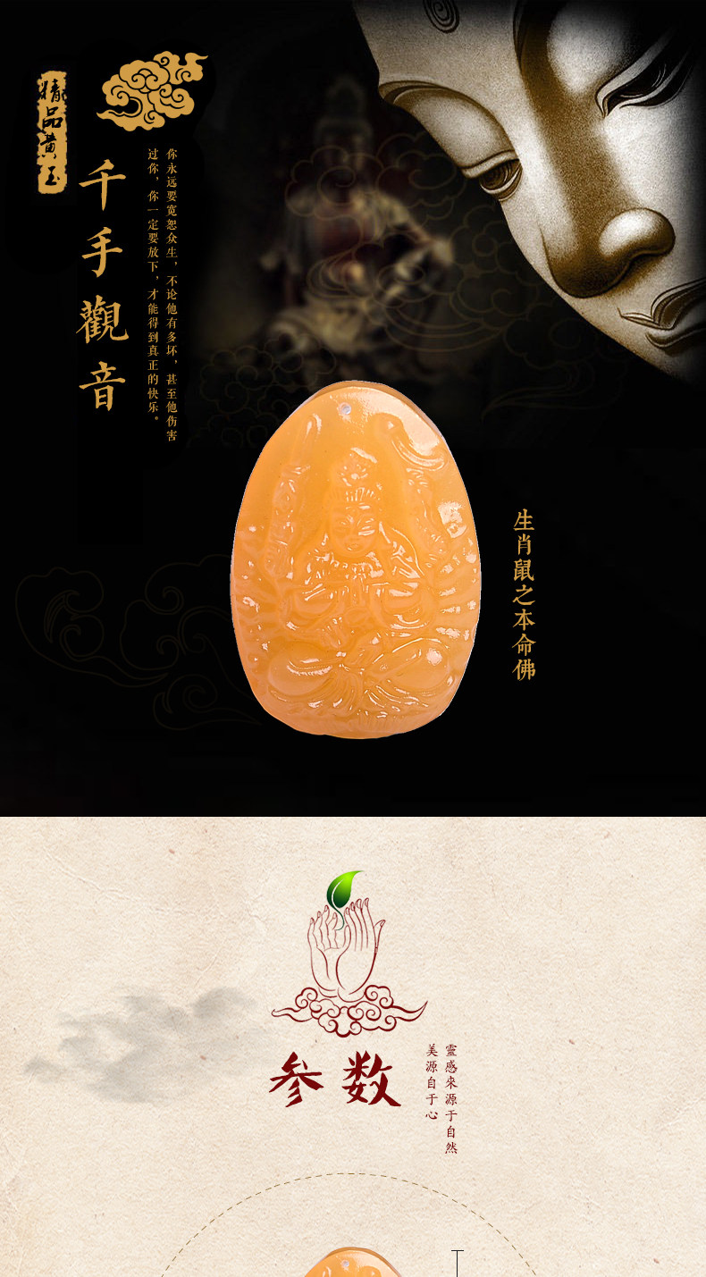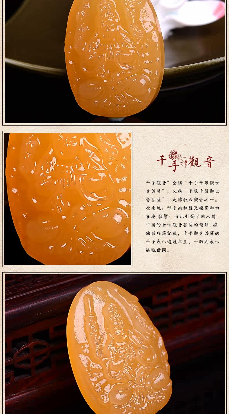 开光羊年黄玉生肖属鼠千手观音本命佛吊坠 男女礼物守护神