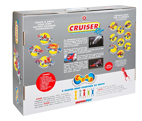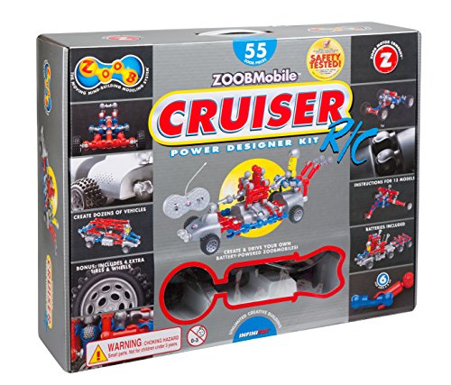 -. Binding : Toy -. Brand : ZOOB -. EAN : 0799783678659 -. Feature : 55 pieces to create your own vehicle and take it out for a drive with a remote control / High quality rubber tires are notched to work like gears / Kids can follow guides or use their imaginations to create their own vehicles / Includes ZOOB pieces in unique racing colors, 12 wheels with tires that work like gears and 3 instruction guides / Recommended for children 6 years of age and older -. IsAdultProduct : 0 -. IsAutographed : 0 -. IsMemorabilia : 0 -. ItemPartNumber : 12053 -. Label : Zoob -. Manufacturer : Zoob -. Model : 0Z12053 -. MPN : 12053 -. NumberOfItems : 1 -. PackageQuantity : 1 -. PartNumber : 12053 -. ProductGroup : Toy -. ProductTypeName : TOYS_AND_GAMES -. Publisher : Zoob -. SKU : 46129 -. Studio : Zoob -. Title : ZOOB R/C Cruiser -. UPC : 635694120538 -. Warranty : Against manufacturing defects