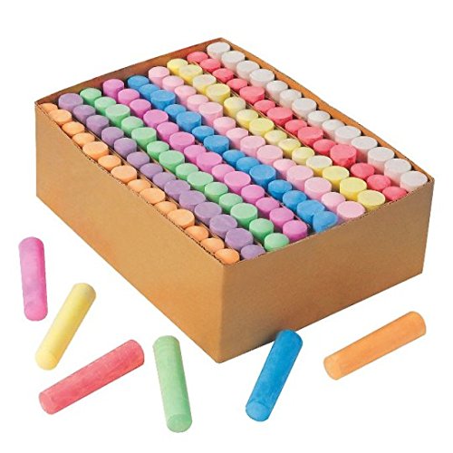 Fourteen each of 9 vibrant colors. Rugged, jumbo size sticks won't break easily. Creative possibilities will abound when kids use them on sidewalks, playgrounds and driveways. Non-toxic chalk washes easily from drawing surfaces. Washes from skin and most clothing. Sticks measure 4" long x 1" diameter. 126 sticks.Feature