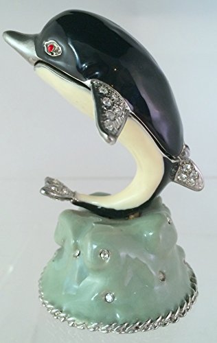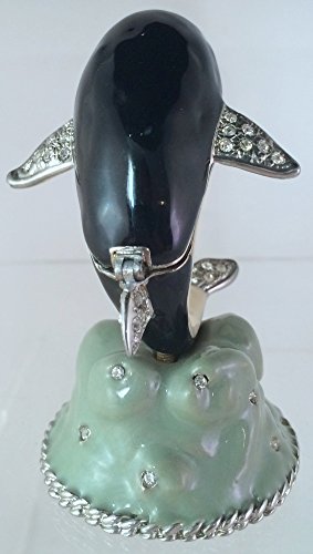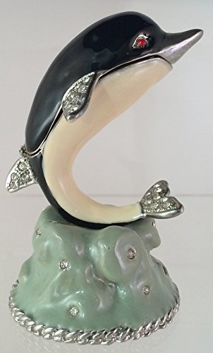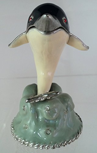 Jewelled Enamel Dolphin Hinged Magnetic Closure With Swarovski Crystals On Base Trinket Box