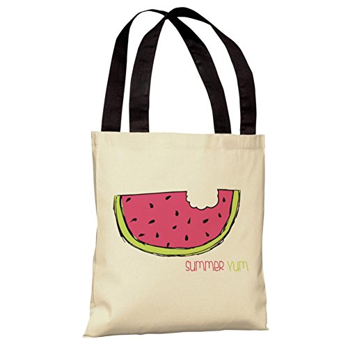 One Bella Casa Summer Yum Watermelon Polyester Tote Bag, 18", Ivory/Pink/Green