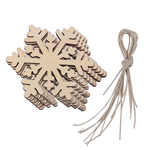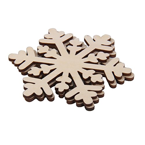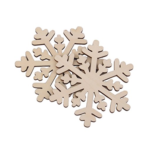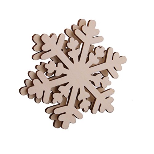 JANOU Christmas Wood Hexagon Snowflake Crafts Hanging Ornaments Wooden Embellishments Christmas Decoration Pack 10pcs