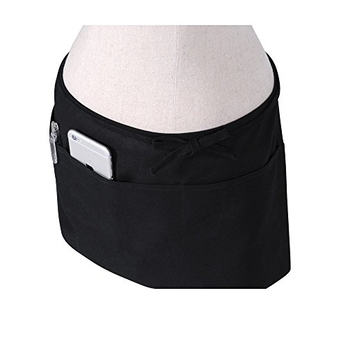 Heselian 3 Pockets Waist Apron, Restaurant Half Aprons, Kitchen Apron, Restaurant Apron, Bartender Apron, Money Apron, Check Holder