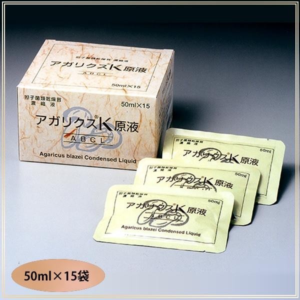 アガリクスK原液は、独自の抽出法により12.5gものアガリクス茸を50ml中に収めることに成功したエキスです。酵素処理をしているので、多量の液体や粉末が飲みにくい人にもアガリクス茸の成分が摂取できるようにしました。 |