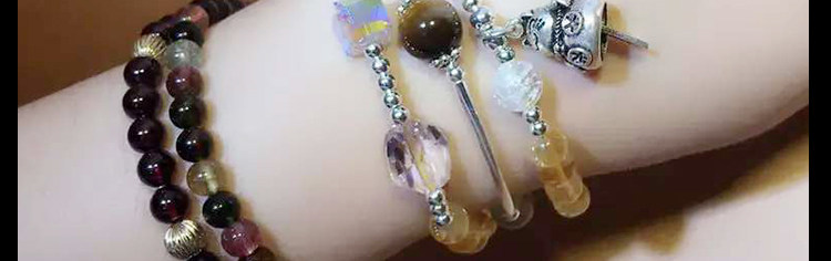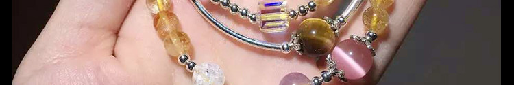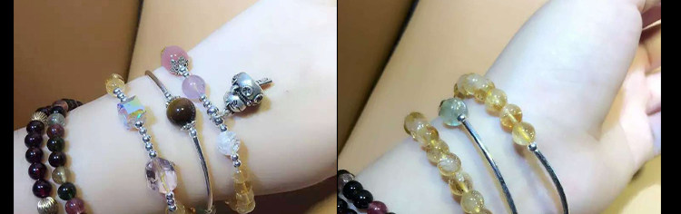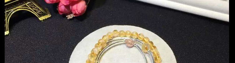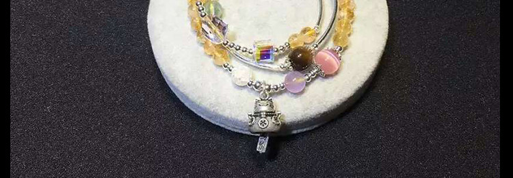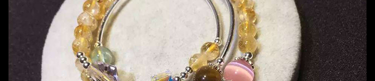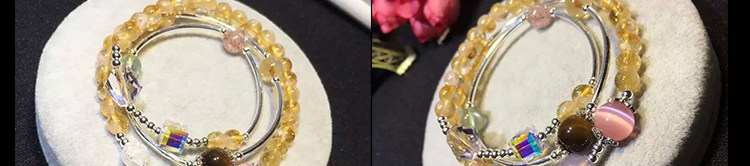 天然黄水晶手链女 多层三圈草莓晶紫水晶黄虎眼石925银招财猫手串