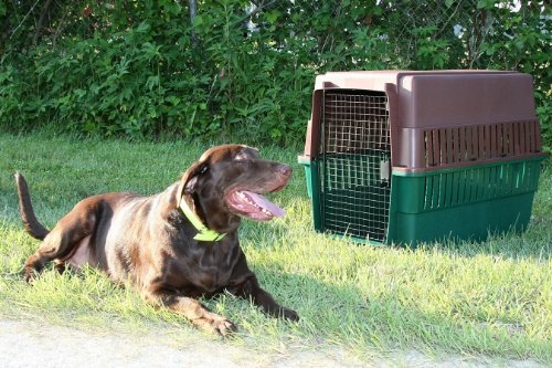 -. Feature : Size: 36 L x 26 W x 28 H. / Perfect for dogs up to 28 Tall. / Including most English Setters Brittany Spaniels SP.R.Inger Spaniels Beagles Bassett Hounds and similarly / Tough durable high-impact plastic construction with reinforced sidewalls. / Hunter green base with chocolate brown top.