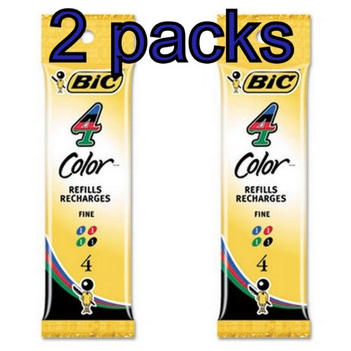 Value Pack of 2 - 8 total Refills for Bic 4-Color Retractable Ballpoint Pen, Fine Point, (BICFRM41)
