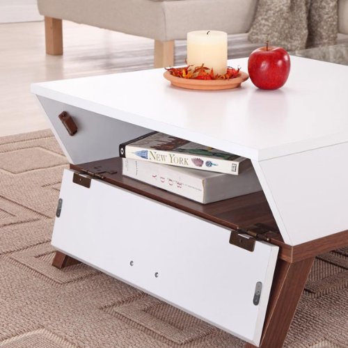 - Title : Browson White Finish Glass Insert Coffee Table